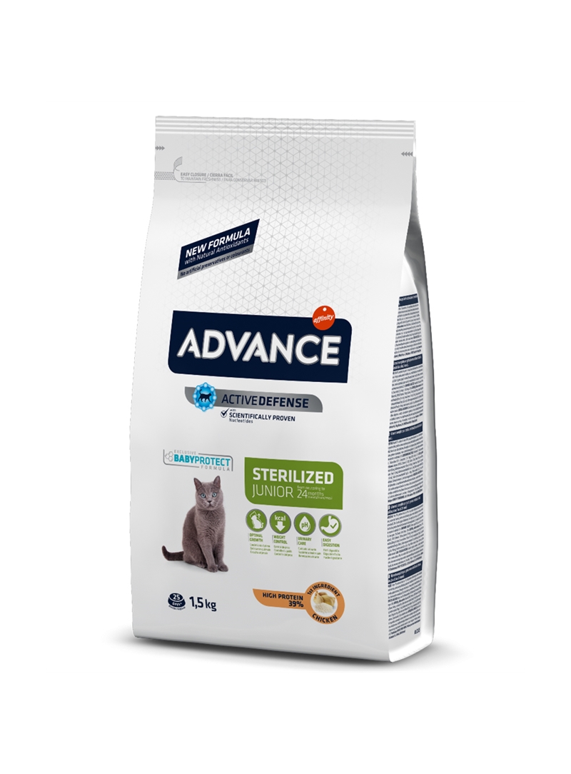 Proporção adequada de proteínas e de gorduras: ideais para favorecer o correto desenvolvimento dos músculos e satisfazer as necessidades energéticas nos 3 primeiros anos de vida do gato, ainda que com a moderação necessária para um gato esterilizado.