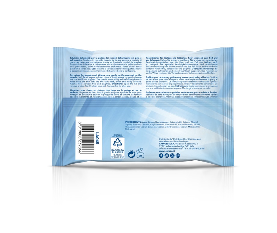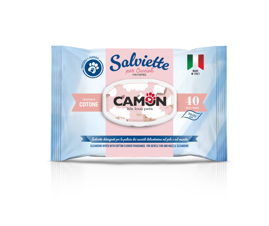 Os Camon Toalhetes Húmidos Flôr de Algodão para Cachorros são toalhetes de tecido macio que devem ser mantidos à mão para limpar suavemente a pele e o pelo dos cachorros.
