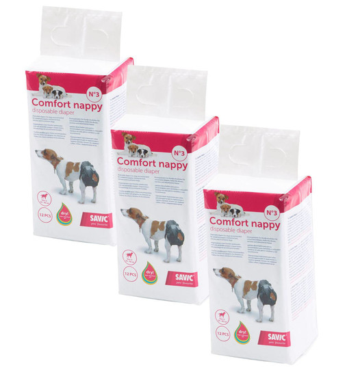 Indicações: Savic Comfort Nappy é uma fralda descartável super absorvente, que pode ser utilizada por cachorros não treinados, por cadelas no cio, e por cães nervosos e incontinentes.