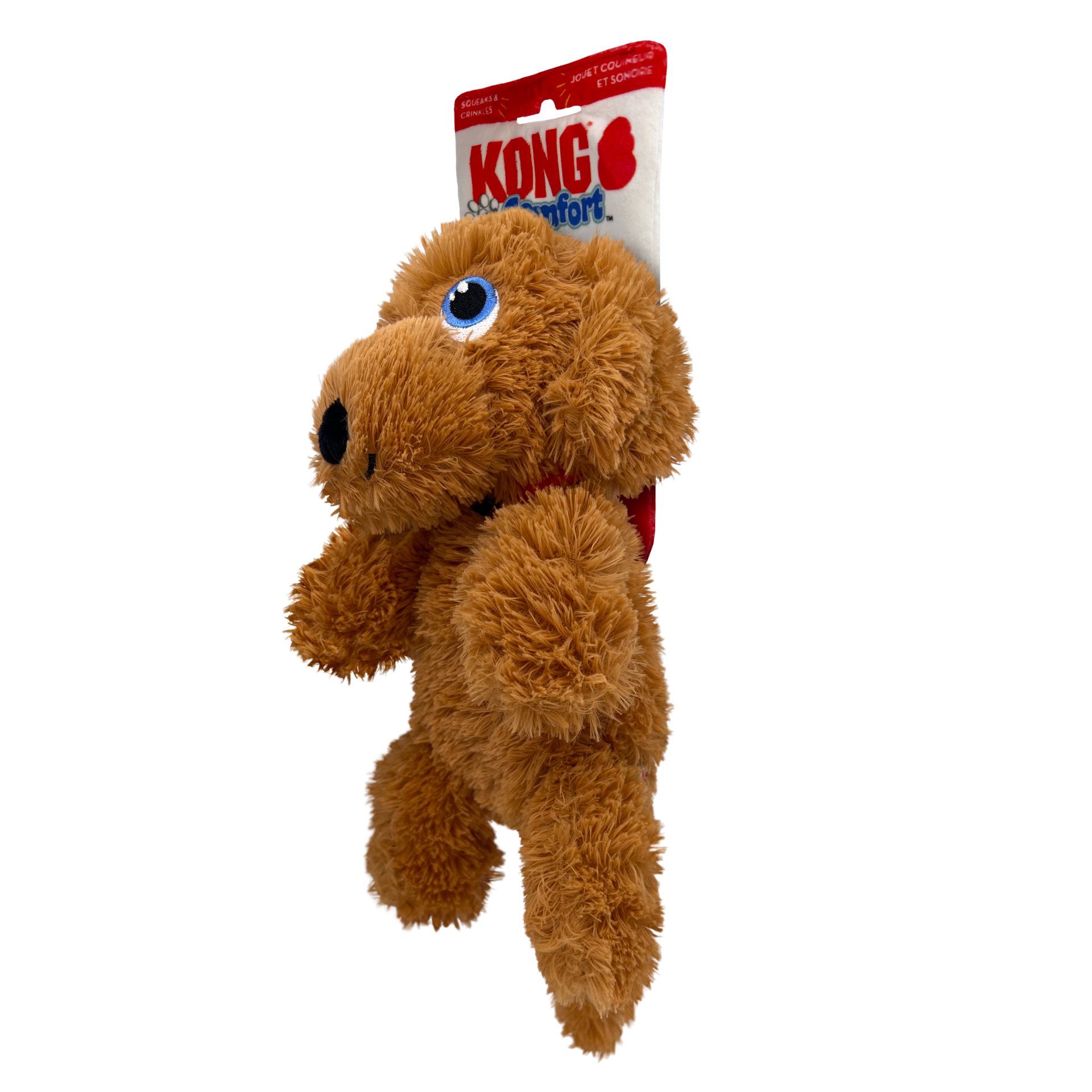 Os KONG Comfort Pups têm pelagem supermacia e corpos flexíveis, tornando-os companheiros perfeitos para aconchego e brincadeiras de busca. Além disso, os cães podem se divertir com a embalagem de pelúcia que faz barulho ao ser amassada! Um apito e o som crocante das orelhas estimulam os instintos naturais e mantêm os filhotes entretidos, enquanto o corpo flexível torna a experiência de sacudir ainda mais satisfatória — com menos enchimento para menos bagunça.