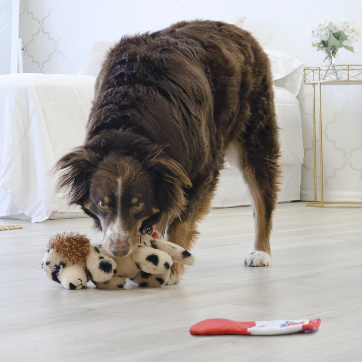 Os KONG Comfort Pups têm pelagem supermacia e corpos flexíveis, tornando-os companheiros perfeitos para aconchego e brincadeiras de busca. Além disso, os cães podem se divertir com a embalagem de pelúcia que faz barulho ao ser amassada! Um apito e o som crocante das orelhas estimulam os instintos naturais e mantêm os filhotes entretidos, enquanto o corpo flexível torna a experiência de sacudir ainda mais satisfatória — com menos enchimento para menos bagunça.