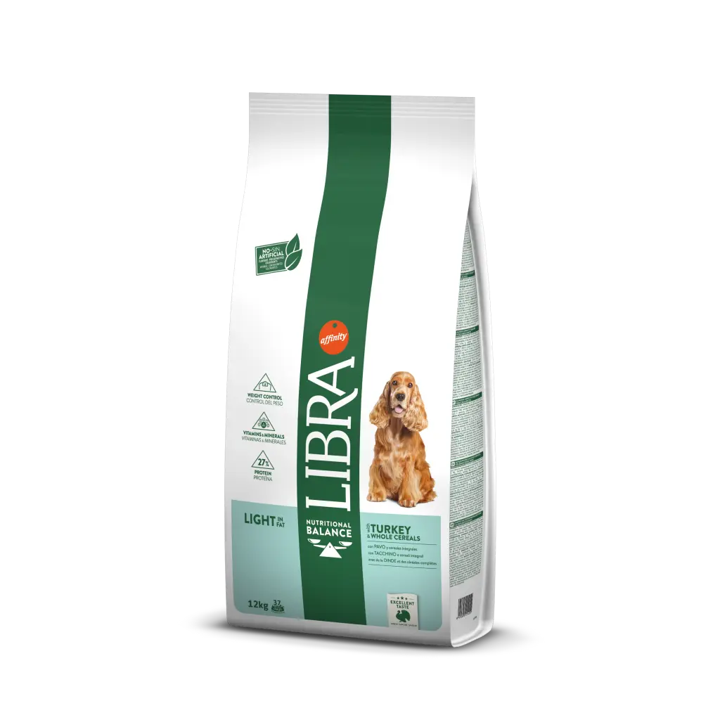 Libra Light in fat Turkey & whole cereals é um alimento formulado para cães com excesso de peso. Com baixo teor de gordura, esta ração seca ajuda o seu melhor amigo a ter um peso ideal, contribuindo, assim, para que ele tenha uma vida saudável e feliz. Uma dieta completa e equilibrada, para o bem-estar geral do seu patudo.