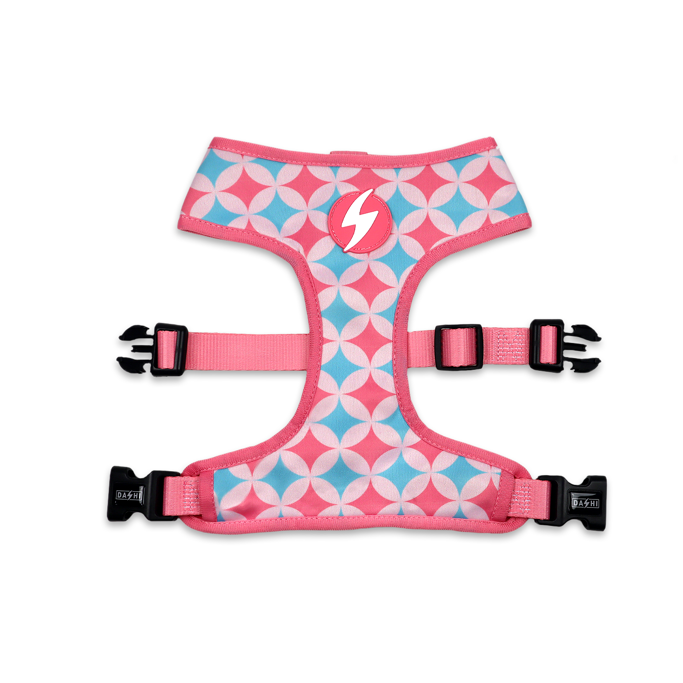 O nosso Neo Mesh™ reversível é feito de Neoprene de um lado e Poliéster do outro lado. Dessa forma, podes ter ao mesmo tempo um toque super suave e um material respirável para manter o teu cão fresco e confortável. As tiras ajustáveis são feitas em poliéster resistente, com um fecho de 4 pontos para a segurança do teu cão.