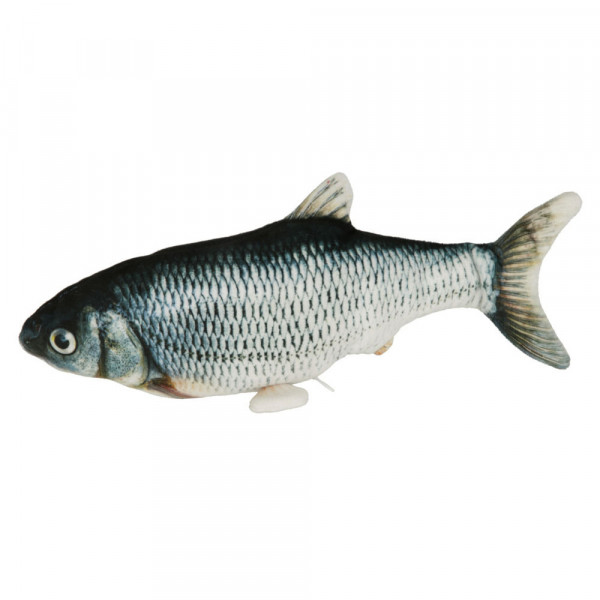 Este peixe para gatos é um brinquedo muito atrativo para os felinos. A barbatana mexe, sendo ativada ao movimento, despertando o interesse no gato na brincadeira! A bateria pode ser carregada com cabo USB e o motor pode ser removido, para lavar o tecido (lavável a 30ºC).
