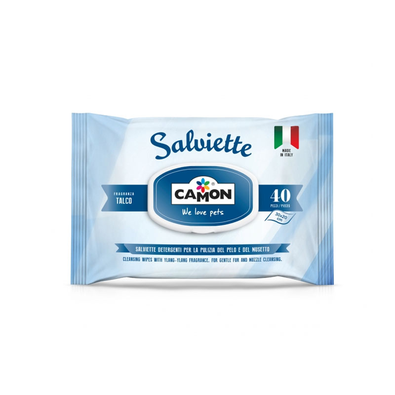 Estes toalhetes húmidos Camon têm fragrância a Talco e são ideais para a limpeza do pelo, das patas, do focinho e das orelhas do seu animal de estimação. Ajuda a controlar odores, ao mesmo tempo que hidrata e protege a pele e o pelo do seu cão ou gato.