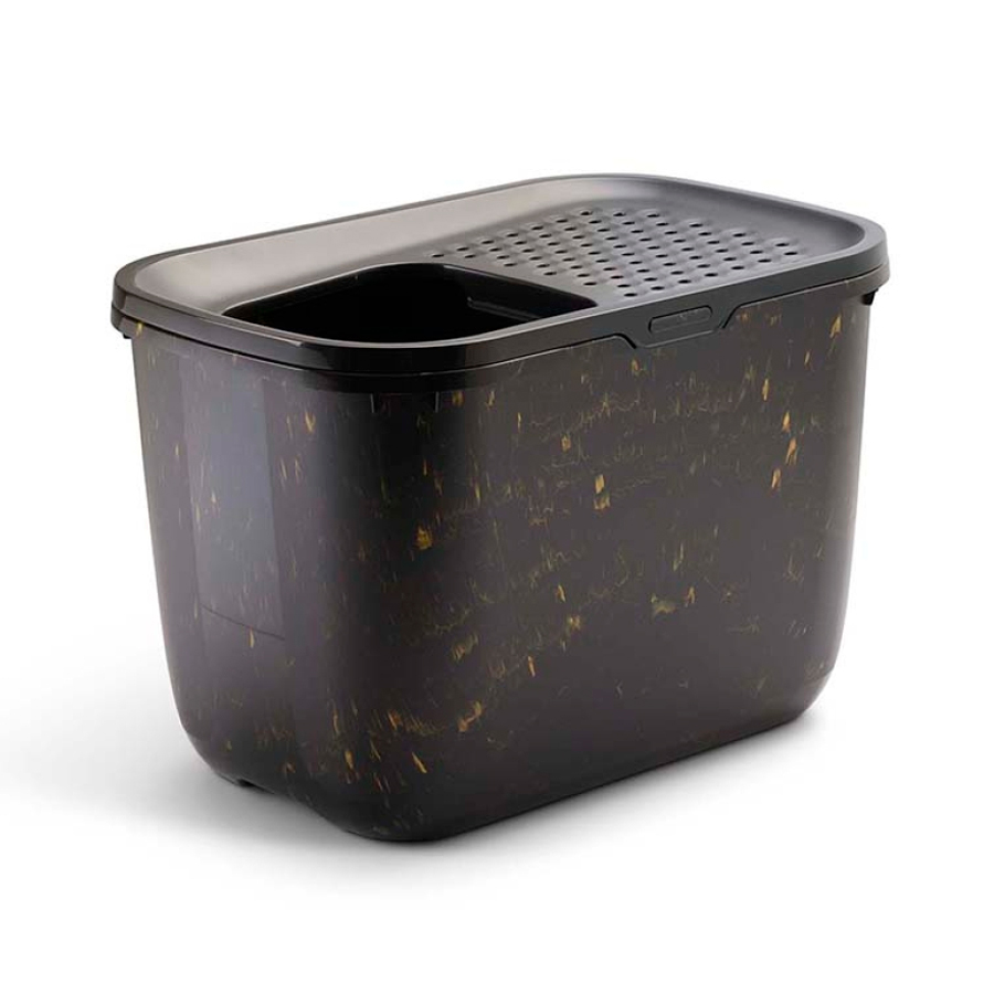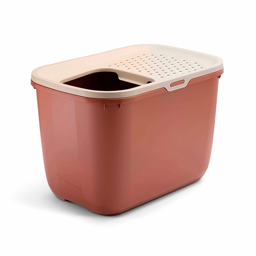 Os rebordos dos pequenos orifícios do topo são ligeiramente biselados. Graças a isto, qualquer areia que o gato traga agarrada às patas, volta a cair no interior da caixa quando este sai, para que a zona circundante fique sempre limpa!